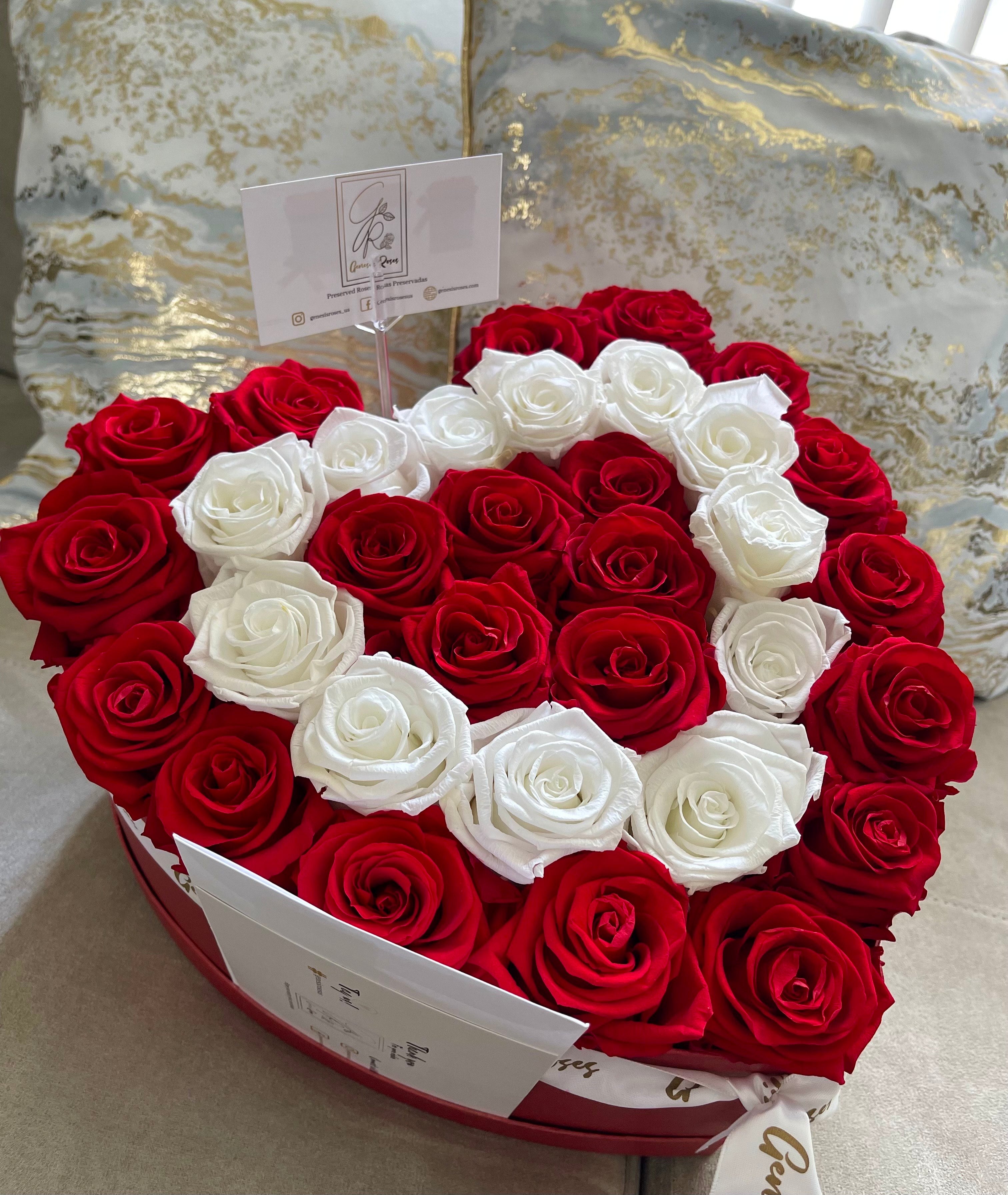 We do not recommend removing the roses from the box. Each arrangement is handcrafted and secured to maintain its shape and longevity. Removing the flowers may cause damage or loosen the design.